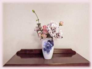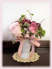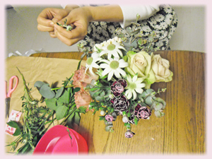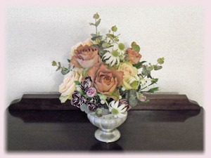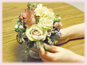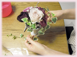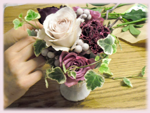 初めの一本に首を傾げながらも、出来上がったアンティーク調のエレガントなアレンジメントに、