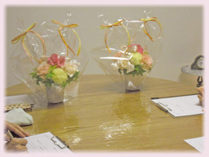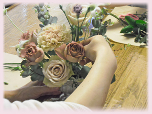 初めてのアンティーク調の花材に「ステキ〜♪」の声が上がりました。