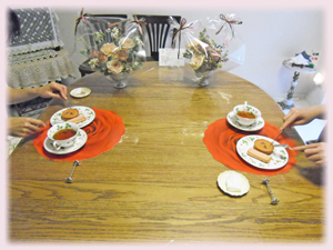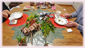 完成したアレンジメントを眺めながらのティータイムも、