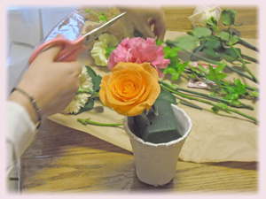 花材を広げ、飾る場所をメージしながらスタートです♪