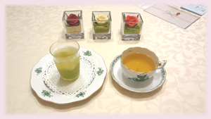 日本茶は、普段から飲んでいますが、先生のご用意してくださった新茶の色鮮やかで豊かな香りと美味しさに驚きました。丁寧に淹れたお茶は、こんなに美味しく癒されることを実感しました。また、品種や効果や保存方法など、お茶について色々知ることができましたので、今後はこれらの事を思い出しながら楽しみたいと思ます。おもてなしの実技も勉強になりました。実践型レッスンは、分かりやすくとても魅力的です。本日もありがとうございました。