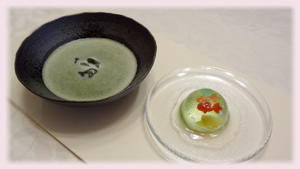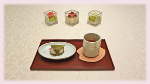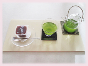 用意していただいたお茶の色が本当に美しい緑色でほのかに甘く感動しました。