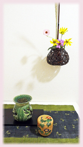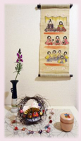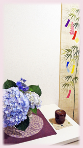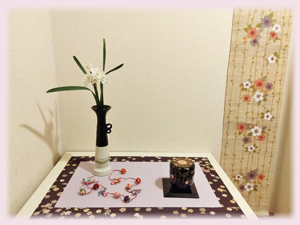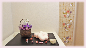 年中行事は、お気に入りのレッスンの一つです。日本ならではの季節の行事には、それぞれ意味が込められ、その意味を知ることで、より心に響きます。年中行事の奥深さを改めて感じる事ができ、日々の暮らしに季節を取り入れ丁寧に過ごしたいと思いました。ティータイムでの節句にちなんだ和菓子や抹茶は、見た目も鮮やかでとても美味しくいいただきました。本日も心豊かに癒しのレッスンをありがとうございました。