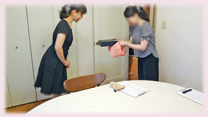 玄関や、和室、洋室でのごあいさつの仕方、手土産の渡し方など、とても勉強になりました。やはり、何事も優しく、美しい言葉と笑顔は、大切なのですね。お客様に「また来たい」と思っていただけるように配慮したいです。今回も素敵なレッスンをありがとうございました。さりげなく、気遣いに出来る女性をめざしてブラッシュアップしていきたいです。今後もご指導宜しくお願い致します。