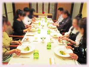 本日も素晴らしいレッスンをありがとうございました。和食のマナーは、2.3年ほど前に受講させていただきましたが、忘れている事も多く、思い出しながら食事を楽しみました。先生のレッスンを受けるのは、もう何回目かになりますが、最近、友人と食事に行った時にマナーを褒められたことがあり、続けていて良かったと思いました。これからも機会があれば是非参加させていただきたいと思います。本日は本当にありがとうございました。