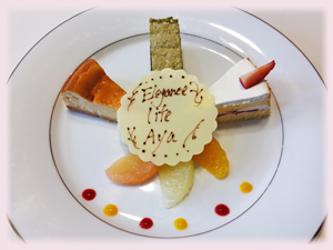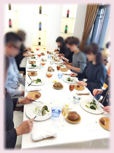 先生20周年おめでとうございます。本日は、そのような記念すべきレッスンに参加でき、また皆さんにお会いでき嬉しく思います。久しぶりのテーブルマナーへの参加でしたが、大変おいしく楽しく沢山の教えや発見をありがとうございました。次回も楽しみにしておりますので、よろしくお願いいたします。本日はありがとうございました。