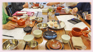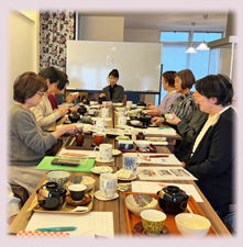 | 受講生の声 日本茶のあらゆる知識を教えていただき、たいへん有意義な時間でした。茶托に正面がある事は知りませんでした。今日からは、お茶を淹れる事が楽しく、美味しくできそうです。忘れないように毎日、心を込めてお茶を楽しみたいと思います。ありがとうございました。 全てのマナーに相手への心遣いを感じました。丁寧に淹れたお茶は、まろやかな味がします。心が落ち着く時間だな〜とも感じましたので、自宅でも実践しようと決めました。先生の言葉遣いや動作にいつも見とれています。ありがとうございました。 日本茶はお出しすることも、いただく機会も多いものでありながら、きちんとした知識がないまま行っていたことが多かったです。ちょっとした疑問もスッキリ!ありがたい時間でした。こちらのスクールに参加させていただけて、その日のテーマはもちろんですが、先生の話し方、所作など、とても勉強になることが多く、数日は真似しようと(笑)頑張ります。いつもありがとうございます。次回の参加も楽しみにしています。 |