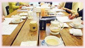 | 受講生の声 初めて参加しました。素敵な先生にお会いできて嬉しいです。ロイヤルミルクティーの美味しさを初めて知り、色々な茶葉がある事も知りました。茶葉により味が変化するのでお気に入りの茶葉で試してみたいと思います。ありがとうございました。 世界三大銘茶のティスティングでは、茶葉によって全く味が違うことに感動しました。ロイヤルミルクミルクティーは、初めて淹れましたが、美味しく出来上がりましたので、自宅でも紅茶を淹れてみようと思いました。本ありがとうございました。 久ぶりのエレガンススクール。心が落ち着き、とても充実して時間でした。ありがとうございました。日々流されて忘れてしまいそうな心のマナーも学べ、私にとって大切で必要な時間だと感じました。これからも宜しくお願い致します。 |