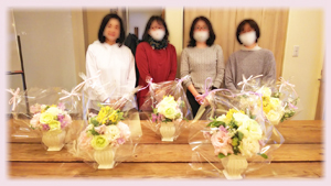 | 受講生の声 ありがとうこざいました。以前からフラワーアレンジメントをやりたかったので、嬉しかったデス。先生からも優しく教えて頂き気持ち良くアレンジできました。 フラワーアレンジメント、とても楽しかったです。ここのところ、忙しい毎日を送っていたのでリフレッシュでき、素敵な時間を皆さんと過ごせて良かったです。ありがとうございました。同じお花でも、それぞれの個性がでて、楽しめました。お茶を飲みながらの雑談も楽しかったですね。次回も楽しみにしていますのでよろしくお願いします。 同じ花を使用していても、人によって全然違う形になるのが楽しかったです。普段、生花を家に飾る事が無いのでお花のある生活も良いなと思いました。ゆっくりお話をする時間も取れたので、とても良い時間になりました。ありがとうございます。 |