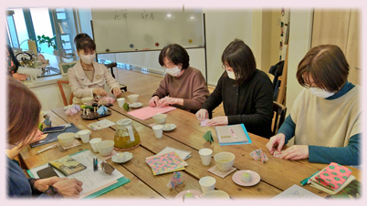 | 受講生の声 とても楽しかったです。しっかり覚えてスムーズにお抹茶をお出しできるようになりたいです。今日一回だけではしっかり覚えきれていないので、また開催していただきたいです。ありがとうございました。 日常にお抹茶をいただく習慣が無いのが寂しい事だと思いました。サロンでもお客様がいらした時にお出しして、自宅でも飲みたいと思いました。心静かな時を増やしてまいります。本日も素敵な時間をありがとうございました。 茶道を習っていたのは40年も前ですが、先生のお話を聞きながら少しずつ思い出しました。心が落ち着くとても豊かな時間を過ごすことが出来ました。自宅でも行いたいと思います。ありがとうございました。 |