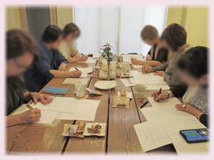 | 受講生の声 本日はありがとうございました。最近は、手紙、はがきを書く機会の少なく、宛名書きから迷うことがあり、ますます書くことが億劫になっていました。正しい事を知ると自分の自信になります。本日はとても楽しく充実した時間でした。ありがとうございました。 今日はありがとうございました。仕事の上でメール、電話、手紙という方法手段により人との関係性を深めています。理解しているようで判断に困る事も多々ありますが、お話をお聞きし、とても参考になり生活の中で生かしていきます。ありがとうございました。 ついつい自分の物差しで考えてしまいます。相手を思いやる心、配慮を忘れず、相手の心に優しく届く伝達のマナーを心掛けます。本日も本当にありがとうございました。 |