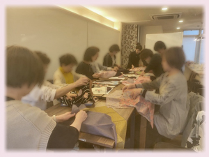 | 受講生の声 金品を差し上げる時、そこに添えられるマナー等で更に気持ちよくお伝えできる事が分かり、贈り物をすることが楽しみになりました。送る品物もいつも悩んでいましたので、正式なことを知ることができ贈る喜びにつながります。ありがとうございました。もう少し物をお渡しする時の立ち居振る舞いを身に着けたいと思います。 贈り物をするときの心得として相手を想いやることが大事だと思いました。贈るタイミング、品物の格、質など、これからすぐ使える知識を学ぶことができましたので良かったです。ありがとうございました。 しっかり学んだことのないことが分かって良かったです。風呂敷もなかなか使う機会がないのですが、使ってみたいと思いました。丁寧な暮らしができたら良いなと思いました。ありがとうございました。 |