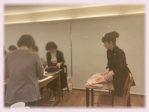 | 受講生の声 とても気になっていた着物の知識を知ることができ楽しかったです。普段、着る機会がある時は、母に全てお願いしていたため、レッスンを機にもっと興味を持って学んでみようかなと思います。娘にも伝えて行きたいと思いました。先生の浴衣姿がとにかく素敵でした!ありがとうございました。 着物の格の違いや紋など色々な事が学べて良かったです。知れば知るほど奥深い世界だと思いますので少しずつ覚えて、見る目を養って行きたいと思います。なかなか着物や浴衣を着る機会が少ないのですが、これから着るようにしたいと思います。次回のレッスンも楽しみにしています。ありがとうございました。 着物が好きでとても興味がありますが、洋服のように自由に自分の感覚で…という訳にはいかず知りたいことが沢山ありました。疑問に思っていたことが、一つ一つ解決し、とても勉強になりました。「着物」日本人として大切にしたい文化です。少し離れると直ぐに忘れがちな着方、畳み方…なるべく普段から触れていたいですね。ありがとうございました。 |